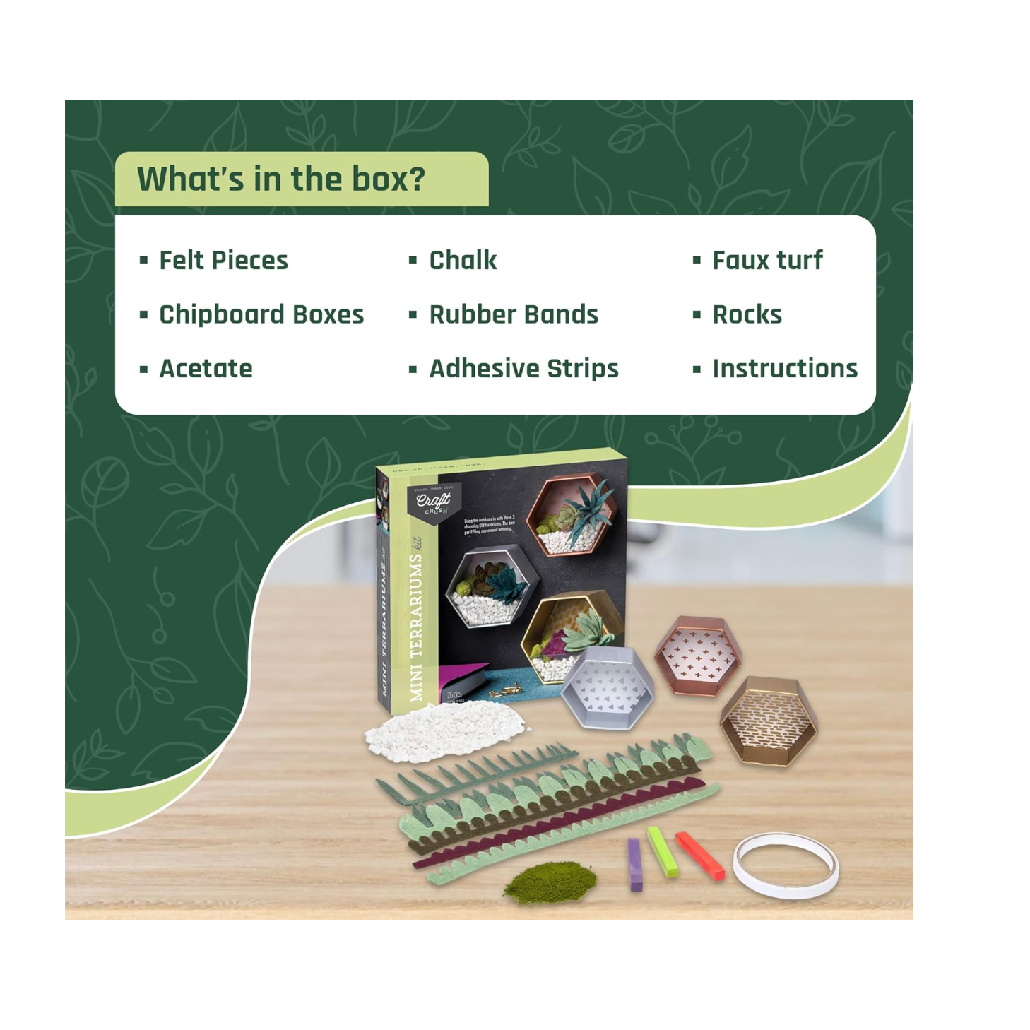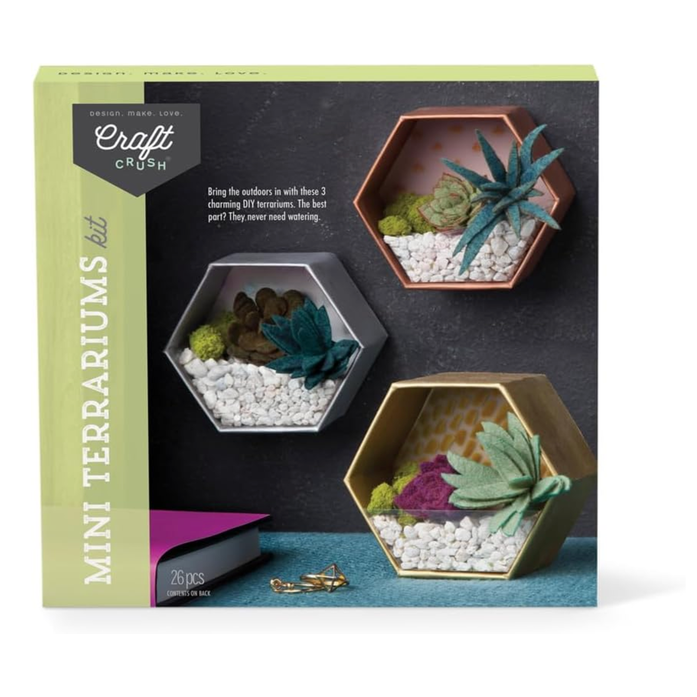Get creative and crafty with Craft Crush's Mini Plants Terrariums! This kit includes everything you need to make 3 charming faux terrariums with different designs and colorful felt succulents. No water needed - just use faux moss and pebbles for a trendy display! Perfect for gifts or adding some greenery to your home.