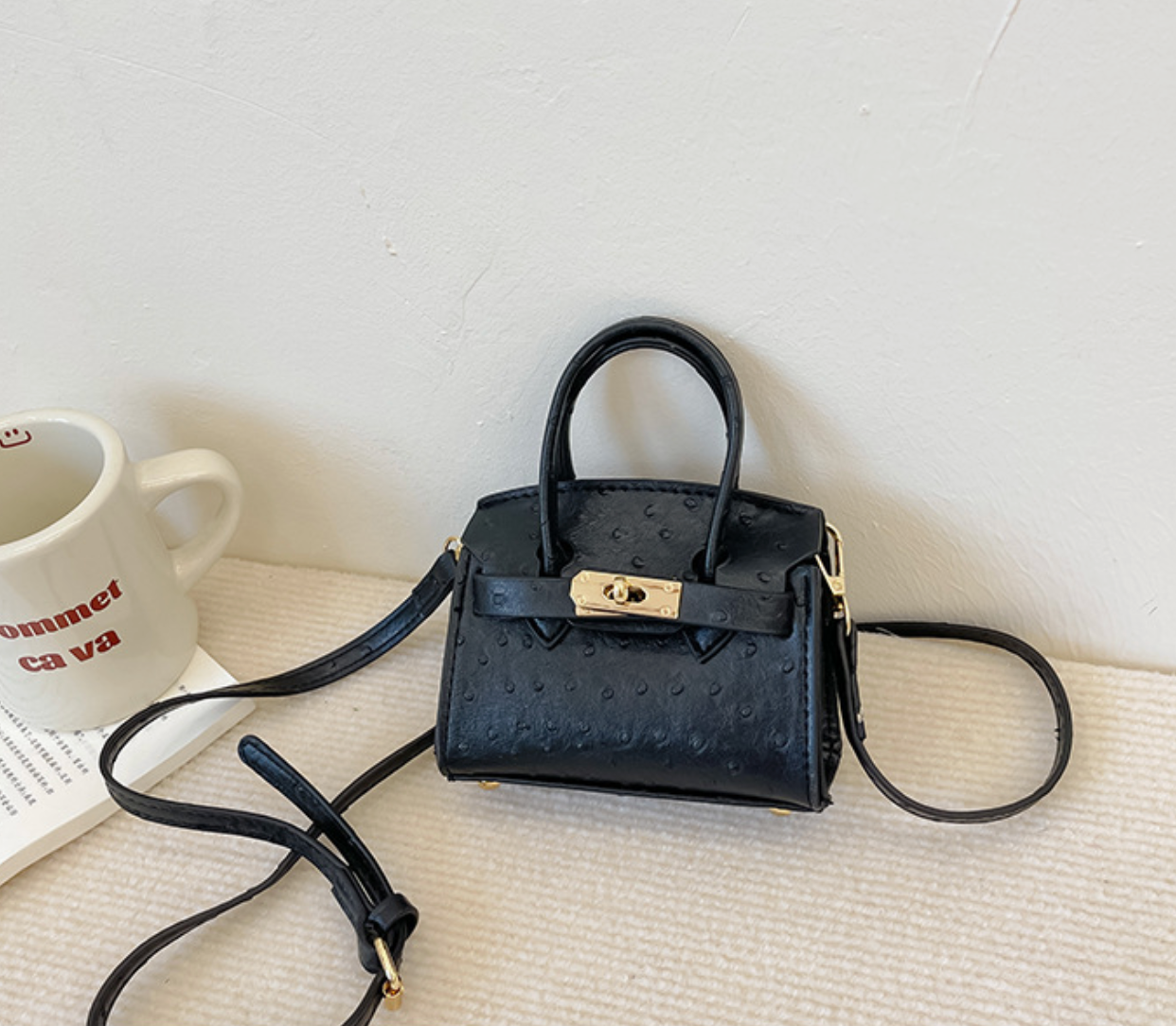 Chic and compact, this mini Kelly-style crossbody bag adds instant polish to any outfit. Designed just for girls, it features a bold contrast color finish, top handle, and detachable shoulder strap—perfect for dressing up or days out.
