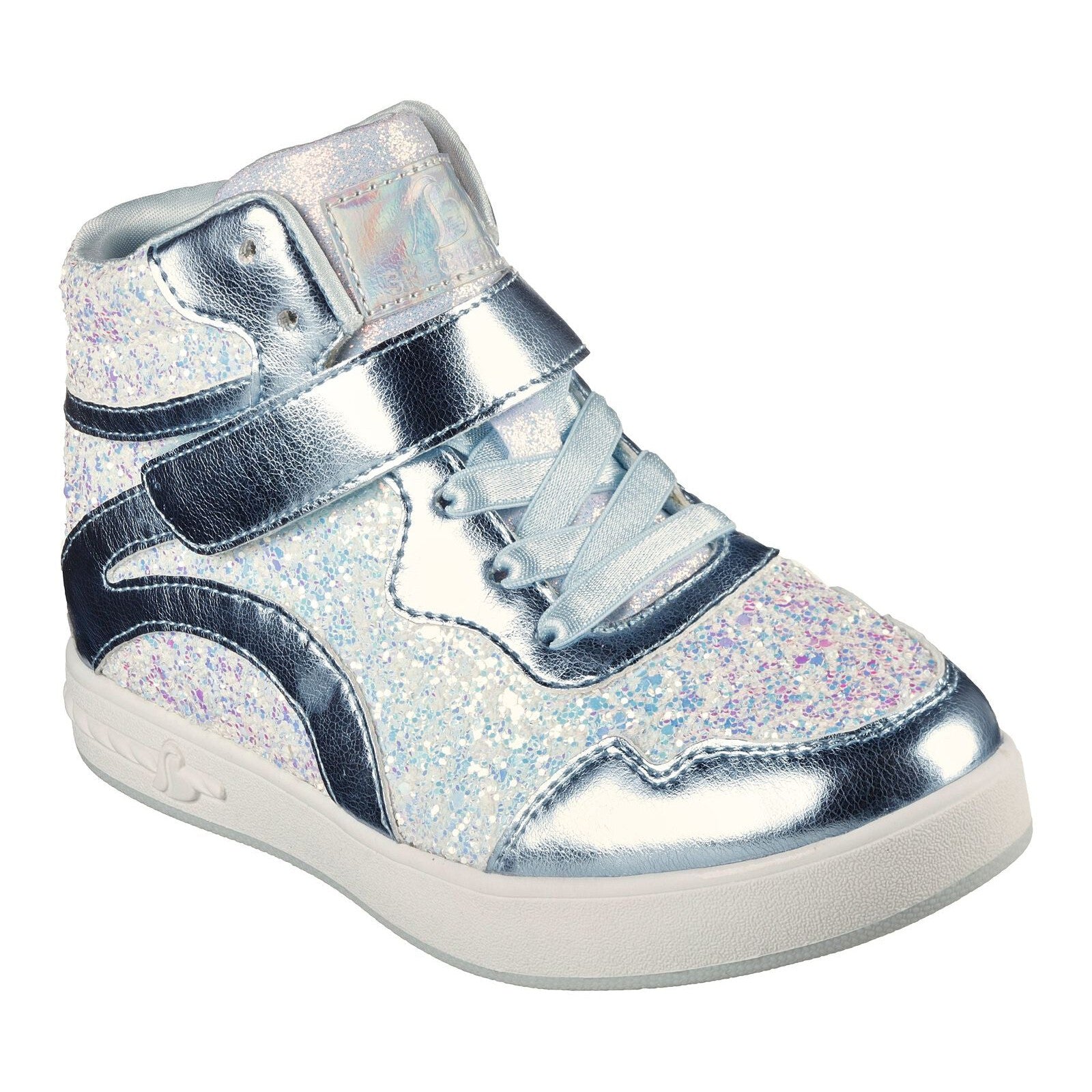 Step up your style game and show your inner fashionista with Skechers Street™ Standouts 2.0 - Glitter Brights. This fashion high-top features a synthetic glitter embellished upper with metallic overlays, a stretch-laced front and an instep strap closure.