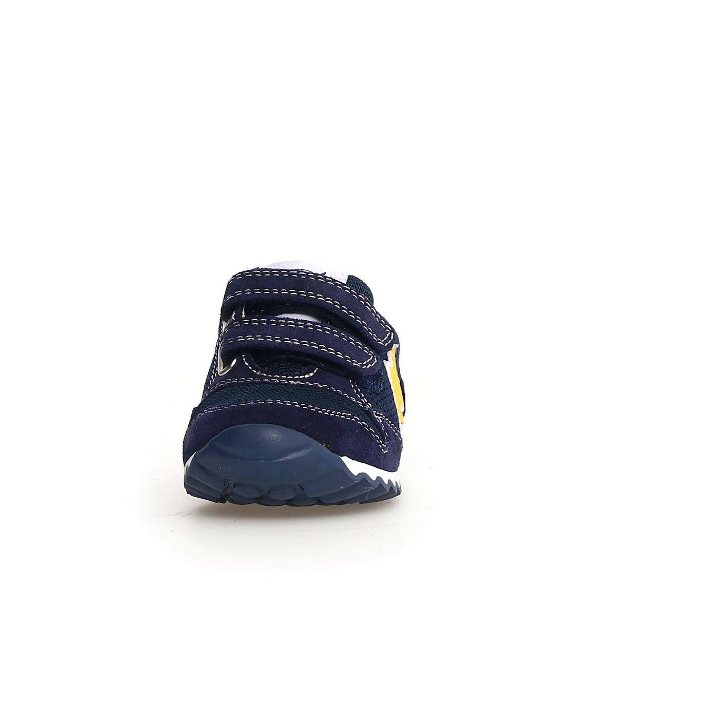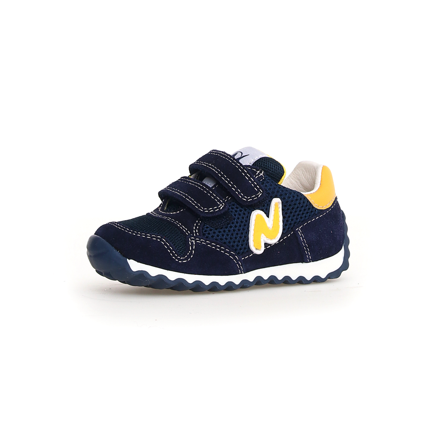Cool sneaker for dynamic feet! Perfect for city strolls or outdoor fun, with breathable fabric and suede upper. Easy to wear with double strap, comfy leather insole, and rubber sole with corrugated tread. Reinforced toe and heel.