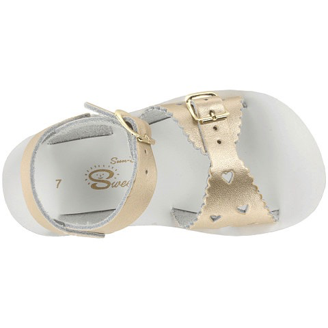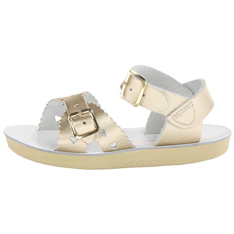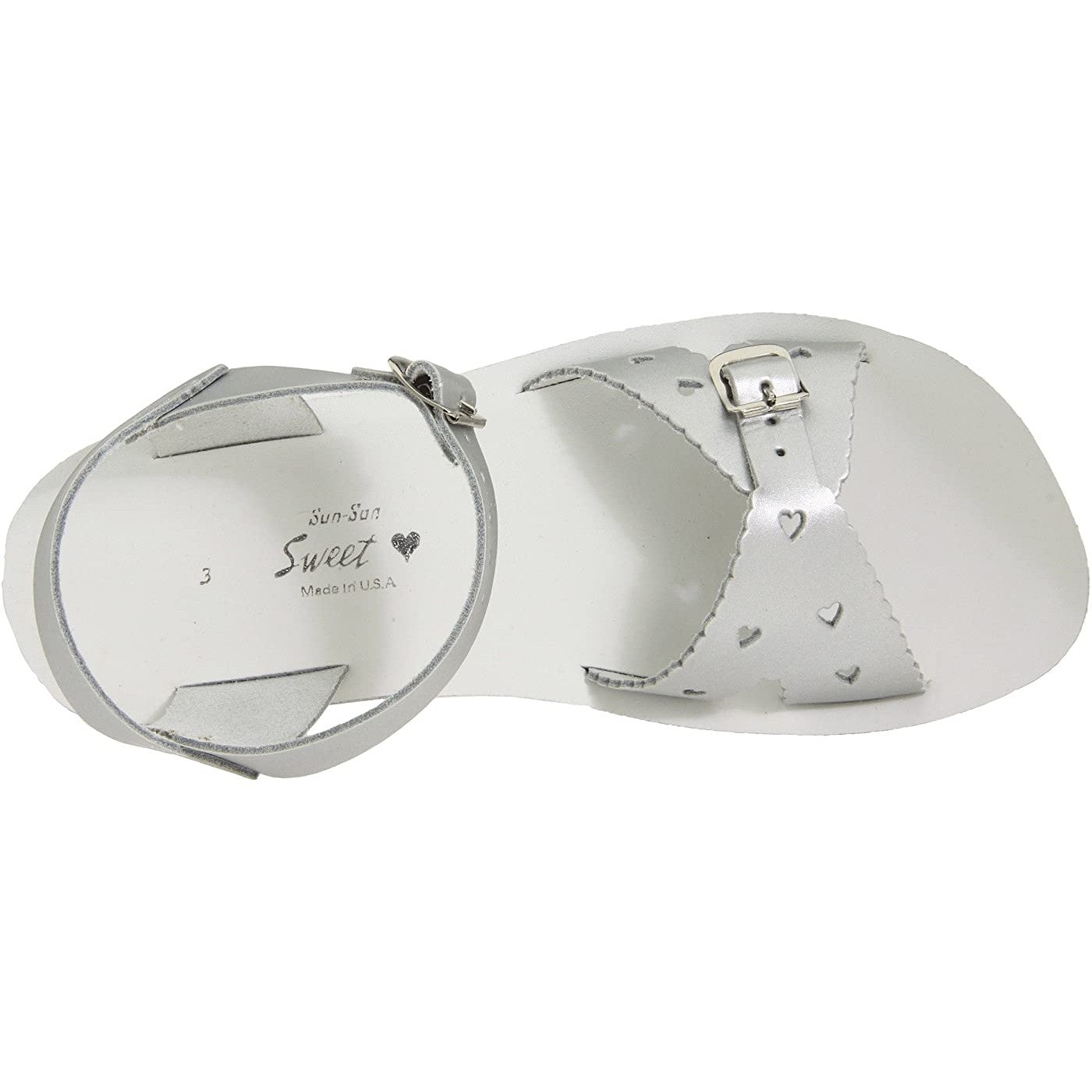 The Sun-San® Sweetheart is a charming sandal adorned with heart-shaped cut-outs and scalloped edges. It can be easily adjusted with buckled straps for the toes and ankles. Not only are these sandals strong and durable, but they also have a feminine touch. As seen on numerous celebrity children, they are a highly sought after choice. The Sweetheart offers the perfect blend of comfort, durability, and style, making them a versatile addition to any wardrobe.