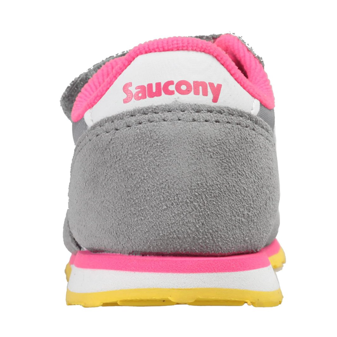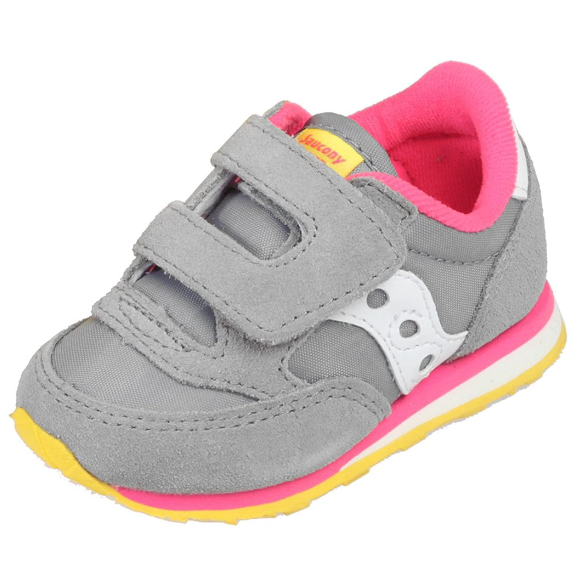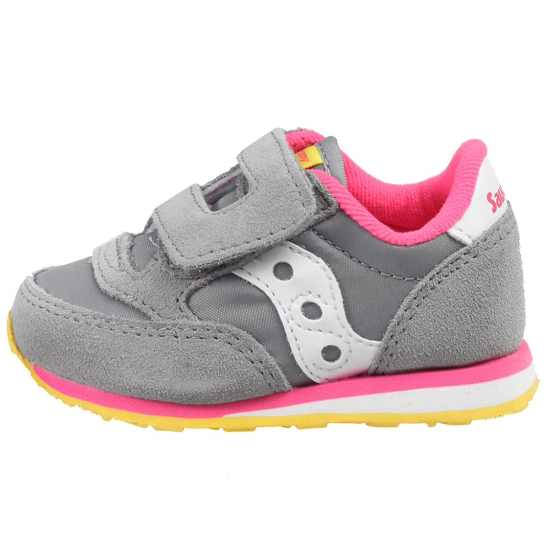 Now you and your baby can have matching Saucony Originals! The Saucony Jazz hook-and-loop offers extreme comfort and that effortlessly cool look that never goes out of style. A rubber outsole with triangular lugs provides traction and flexibility for a comfortable, smooth ride. Fun colors and easy closures have made the baby Jazz the ultimate first shoe.