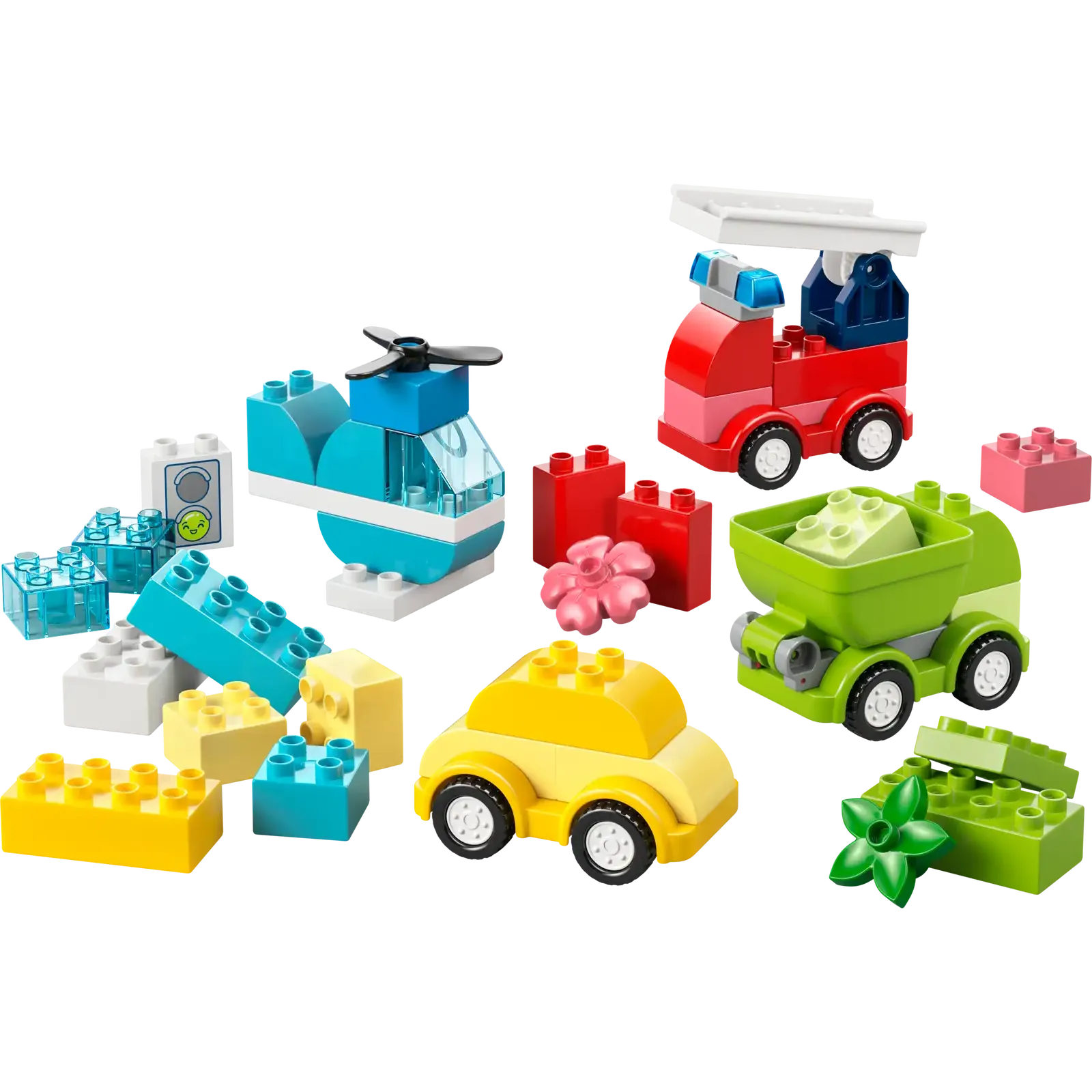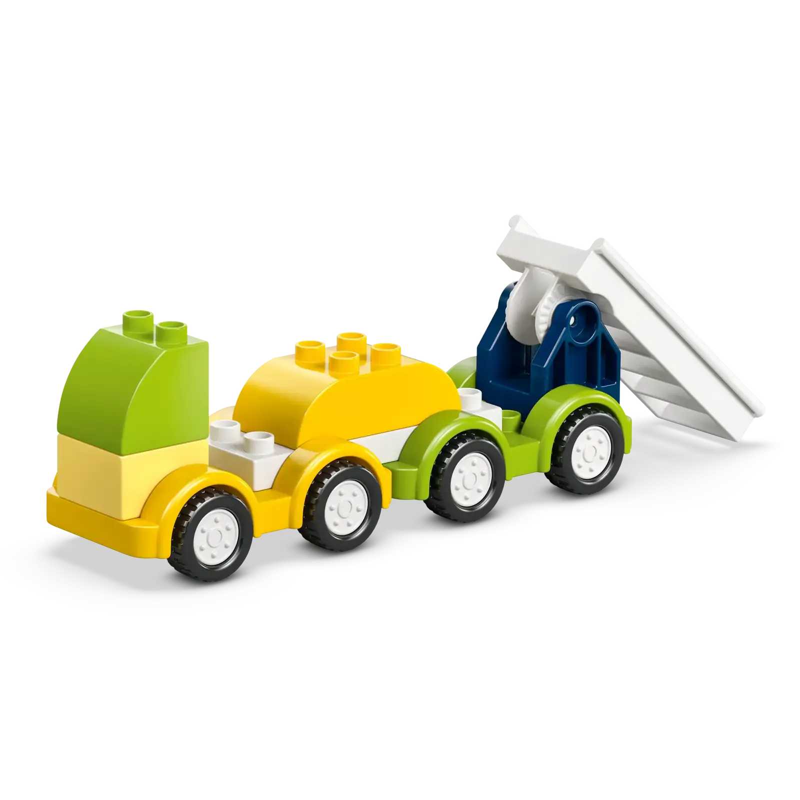 Build a helicopter, dump truck, fire truck, car — then remix into new creations