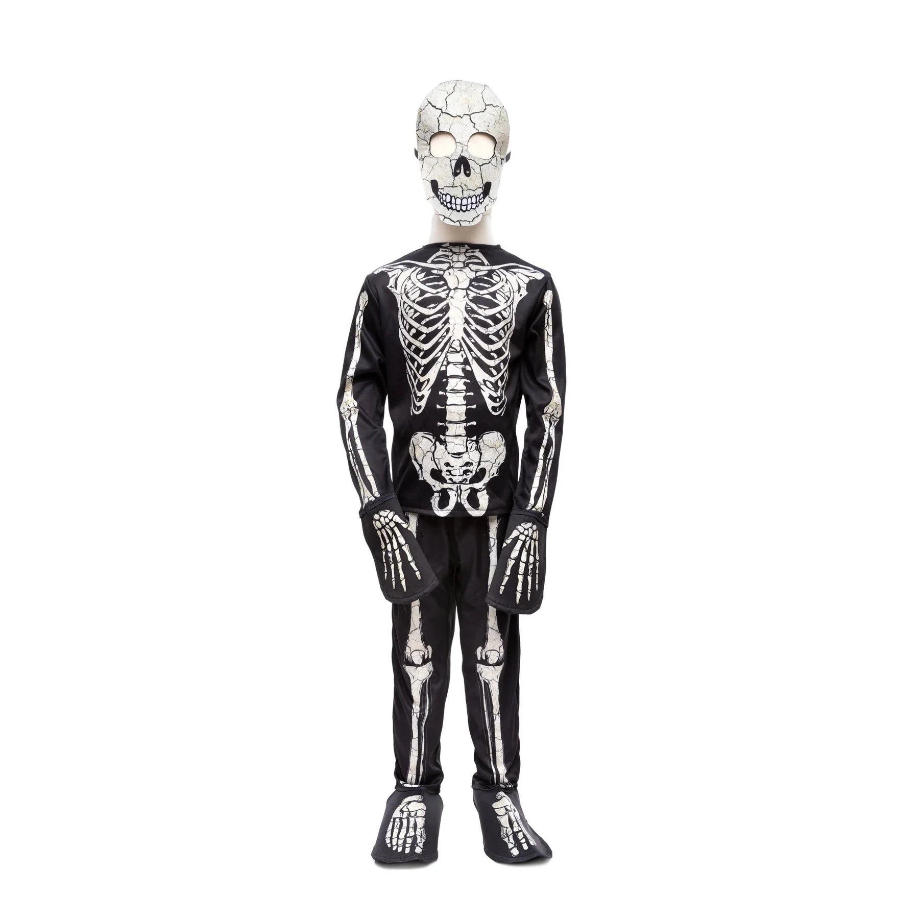 The shirt features long sleeves and a crew neck, while the pants are designed with an elastic waistband for a comfortable fit. The matching skeleton mask completes the set, adding an extra layer of spookiness to your look.