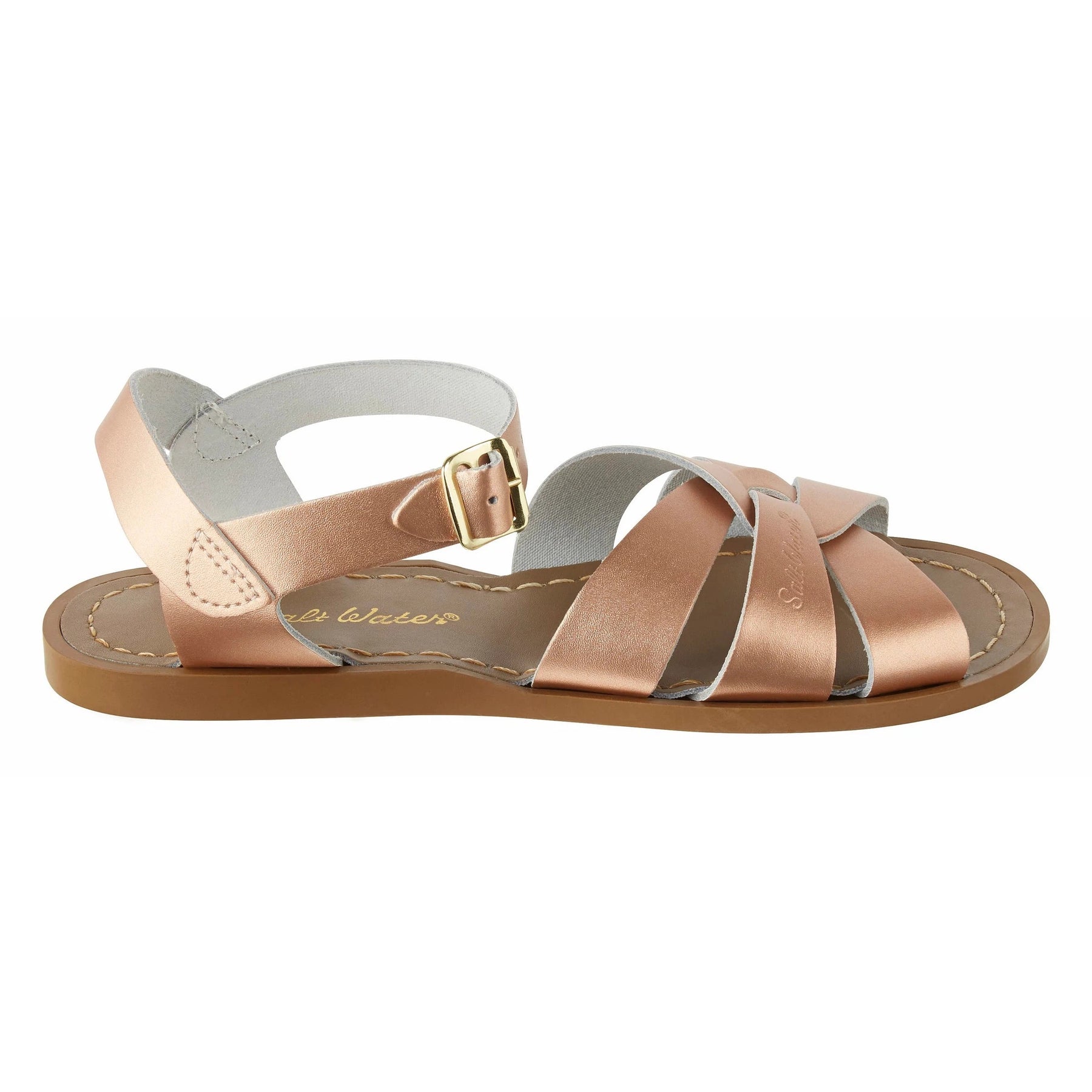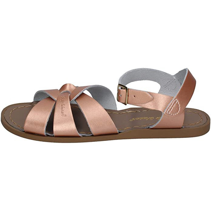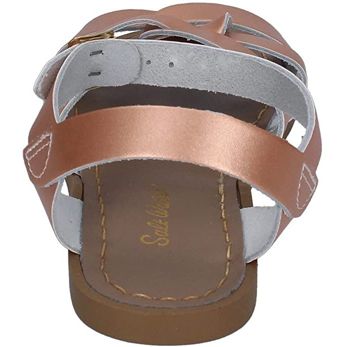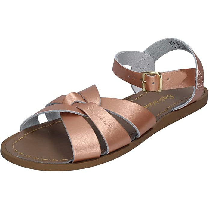 Walter Hoy first made these in his work shop circa 1944. The Original Salt-Water® Sandal is defined by its hand-stitched, non-slip, molded rubber sole and scuff-resistant, water friendly genuine leather upper. All Salt-Water® Sandals clean up very easily, come with rust-proof brass buckles, and made for in-and-out of water wear. They go from children’s sizes all the way up to adult sizes and are popular among celebrities and fashionistas alike. They are a comfortable, durable combination of timeless style. The tan Salt-Water® Sandal was the first color to be made from scrap World War II boot leather in 1944. These versatile sandals combine comfort, fashion and functionality.