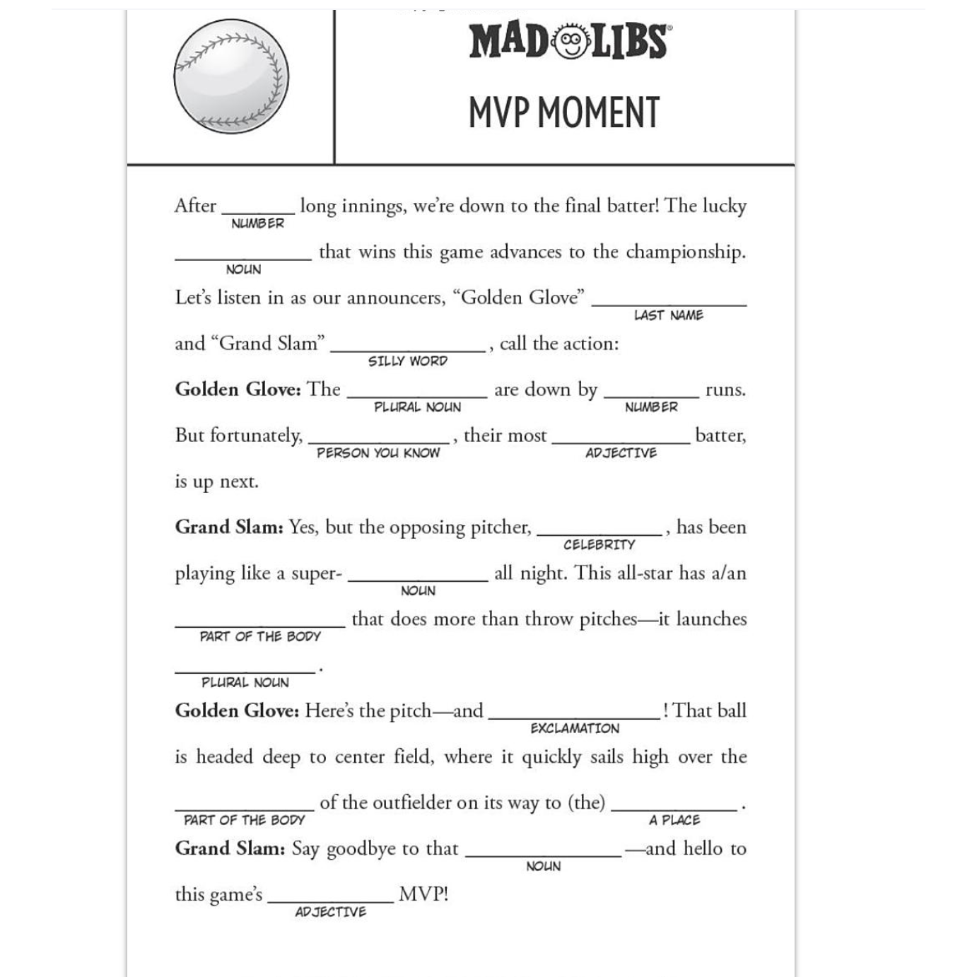Mad Libs is the world’s greatest word game and the perfect gift or activity for anyone who likes to laugh! Write in the missing words on each page to create your own hilariously funny stories all about baseball!