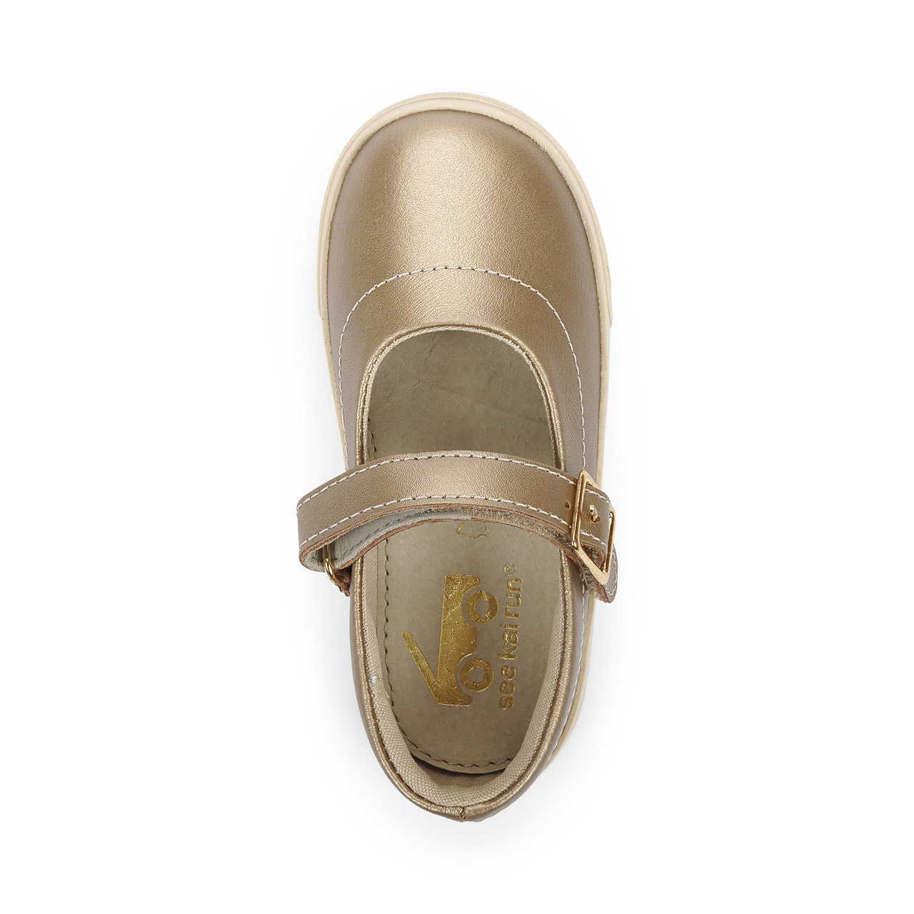The See Kai Run Lucia Mary Jane Dress Shoe is a modern take on a classic, designed for toddlers and little kids. Available in black patent or gold metallic leather, this special occasion shoe blends standout style with comfort and traction for playtime after the party.