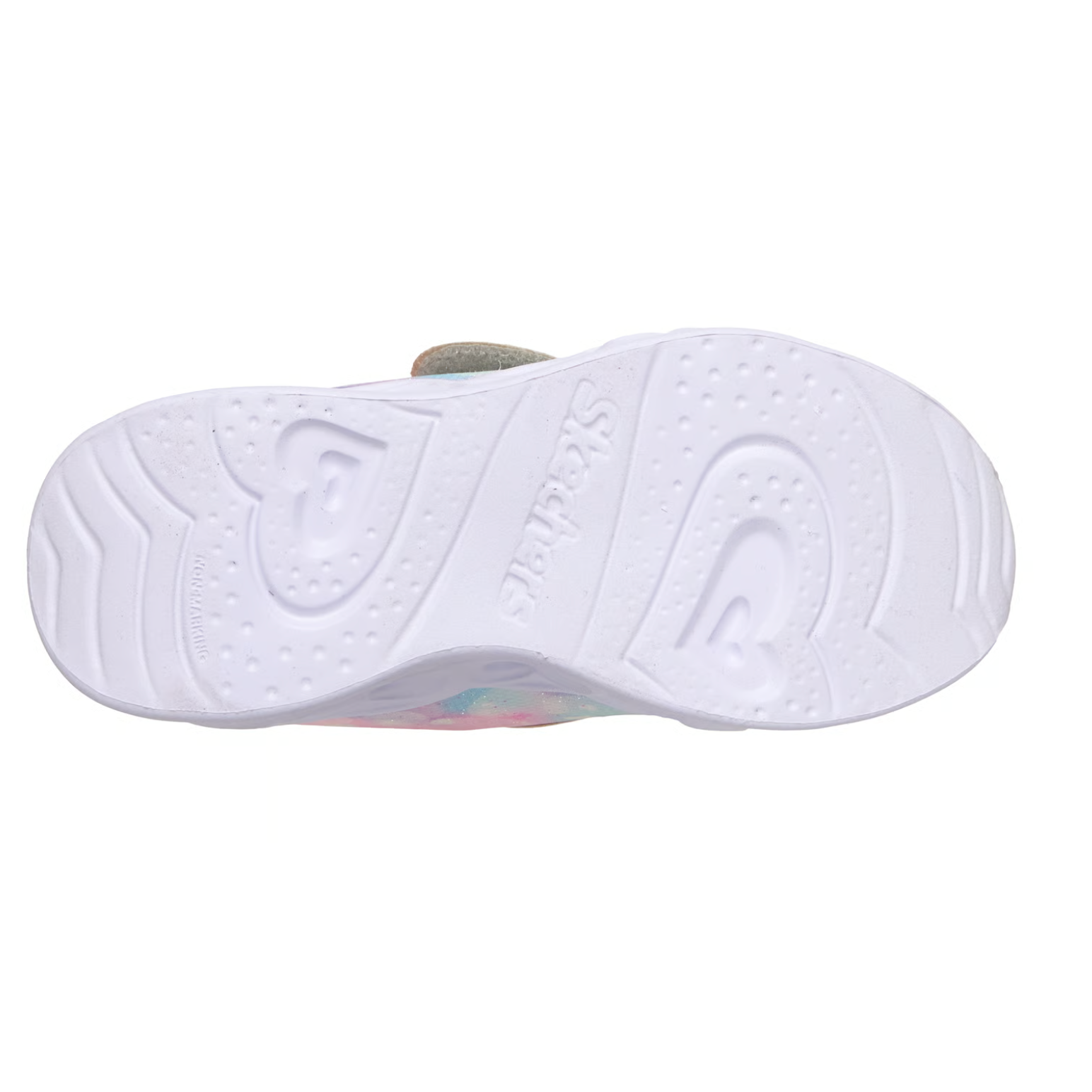 Let her shine with every step! These adorable Skechers light-up sneakers feature sparkling heart-shaped accents and a fun design that girls love. The adjustable strap closure makes them easy for kids to slip on and off all by themselves, giving them both independence and style. Perfect for play, school, or any day they want to sparkle and glow.