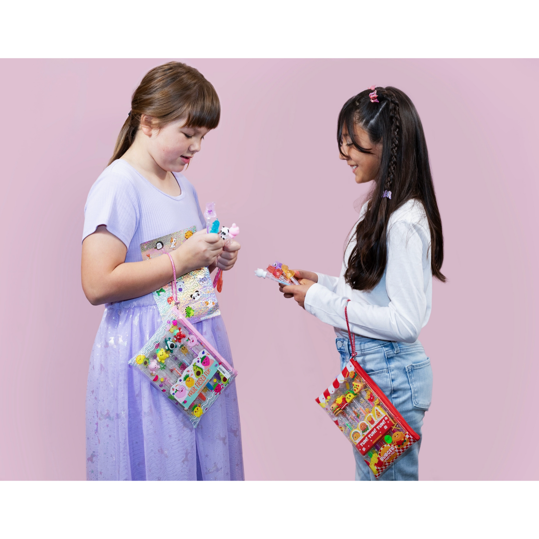 Let your creativity pop with Gel Pentastic Critters Gel Pens. Adorned with vibrant fruit toppers and scented gel ink, these pens add a playful twist to note-taking and doodling. With lightweight design and smooth grip, they're perfect for little hands. Includes reusable bag, sticky notepads, and stickers!