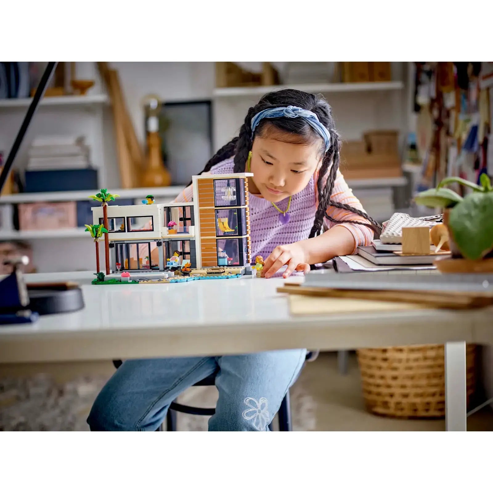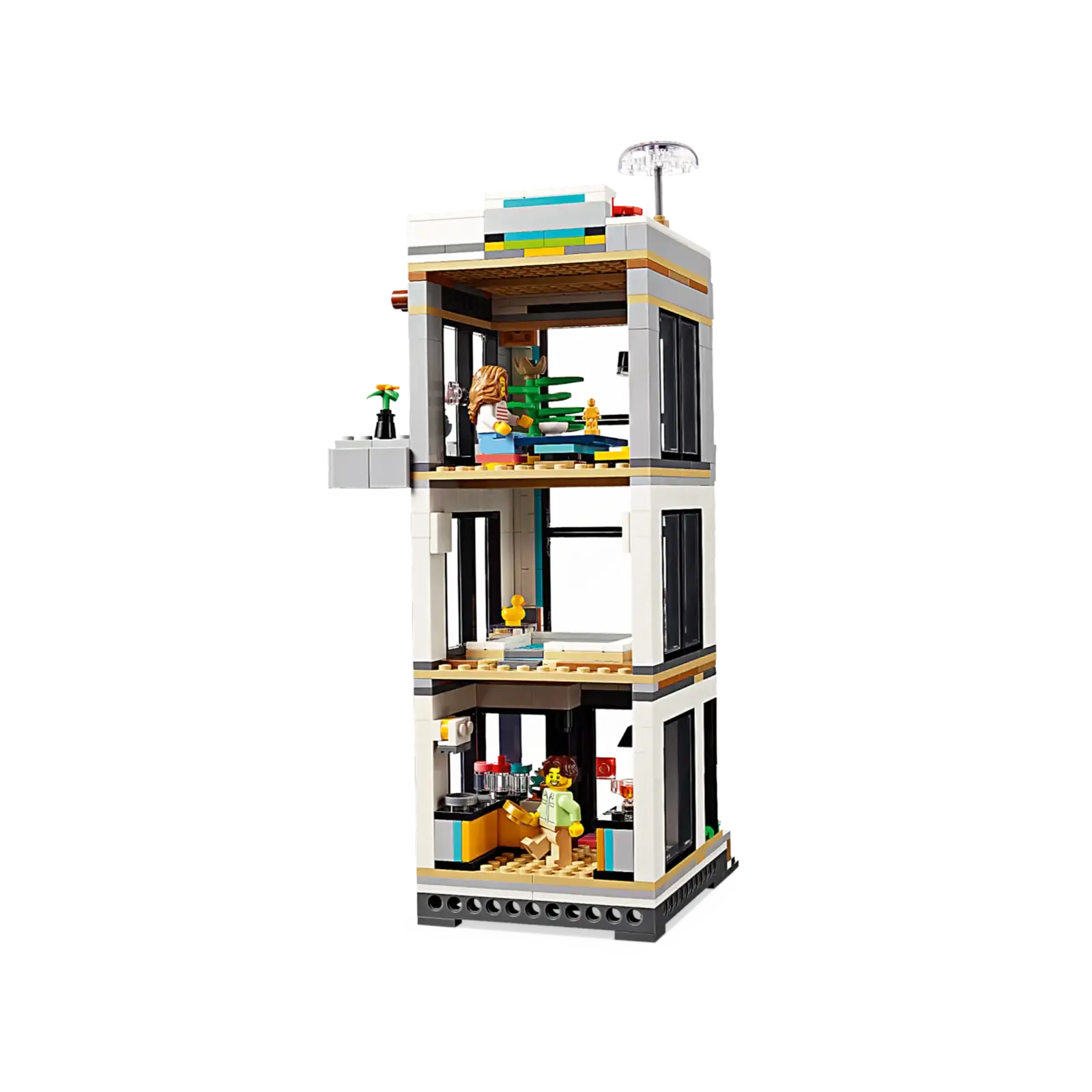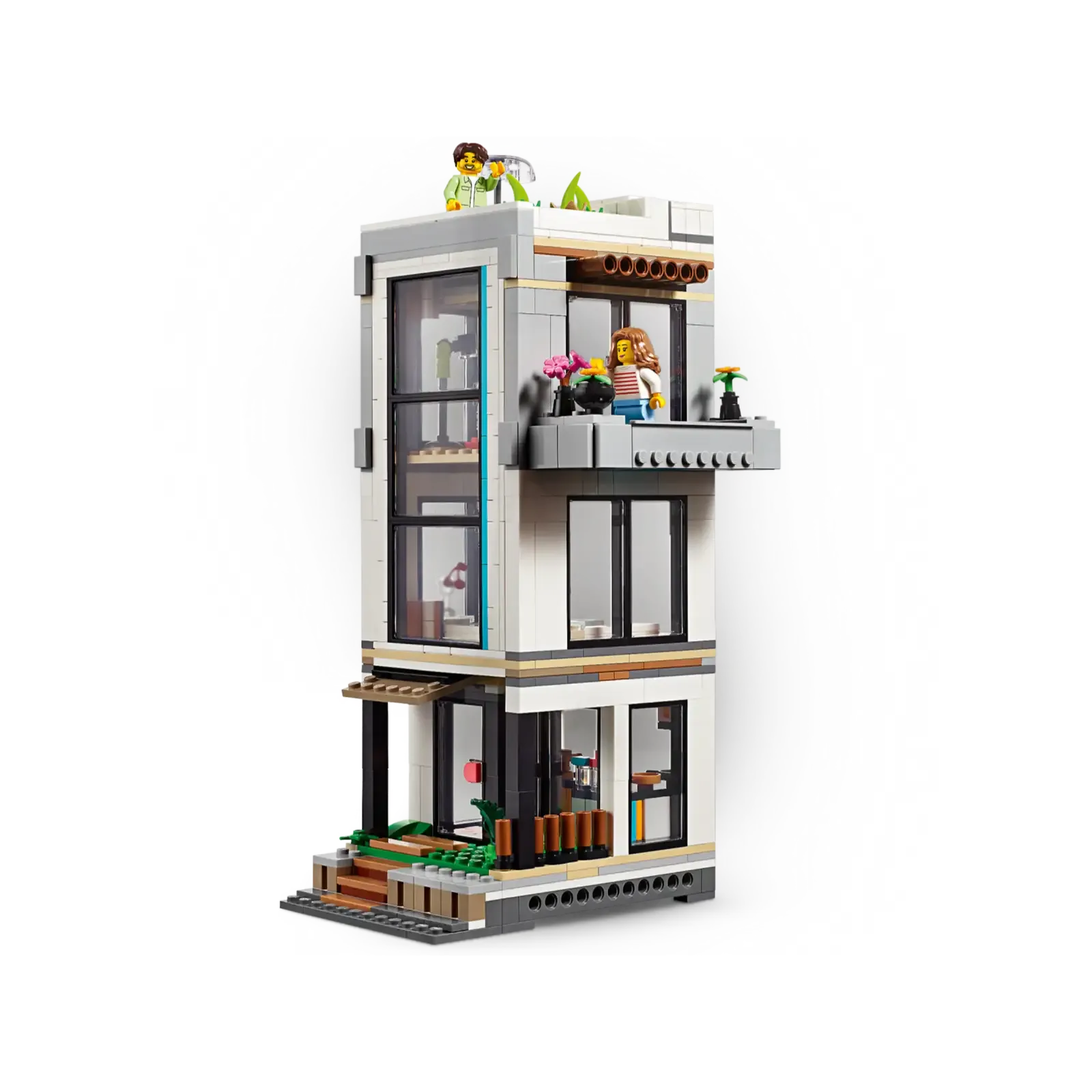 Build, rebuild, and dream big with the LEGO® Creator 3-in-1 Modern House! Perfect for kids 9 and up, this set transforms into a sleek beach house, a stylish 3-story city building, or a cozy forest cabin—all with the same bricks. Each model is packed with fun details like palm trees, rooftop terraces, and even a pool! With 2 minifigures and swappable outfits, the imaginative play never stops. Open backs and lift-up roofs make it easy to explore inside. Build it your way!