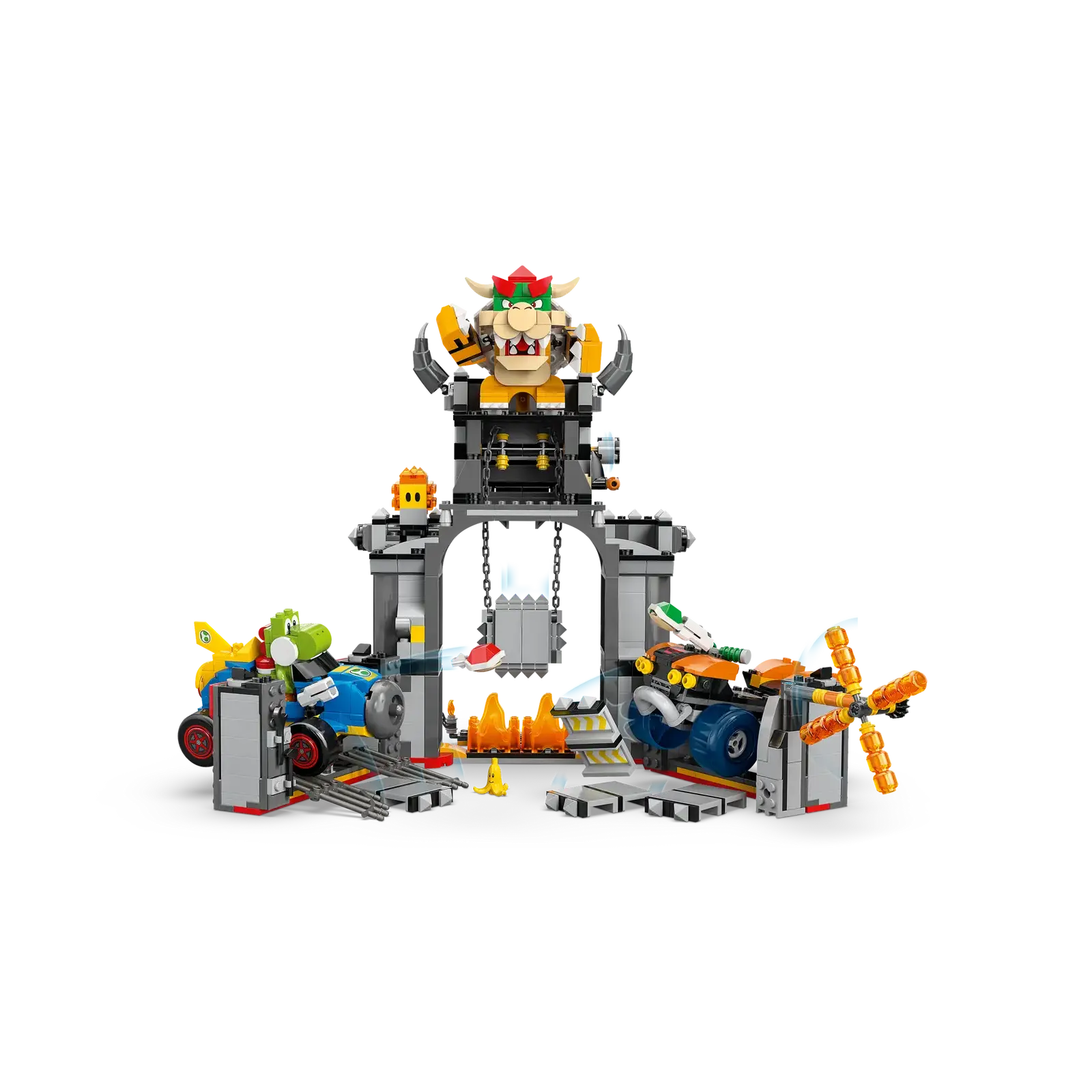 - Includes Bowser figure, castle tower, racing kart and track pieces