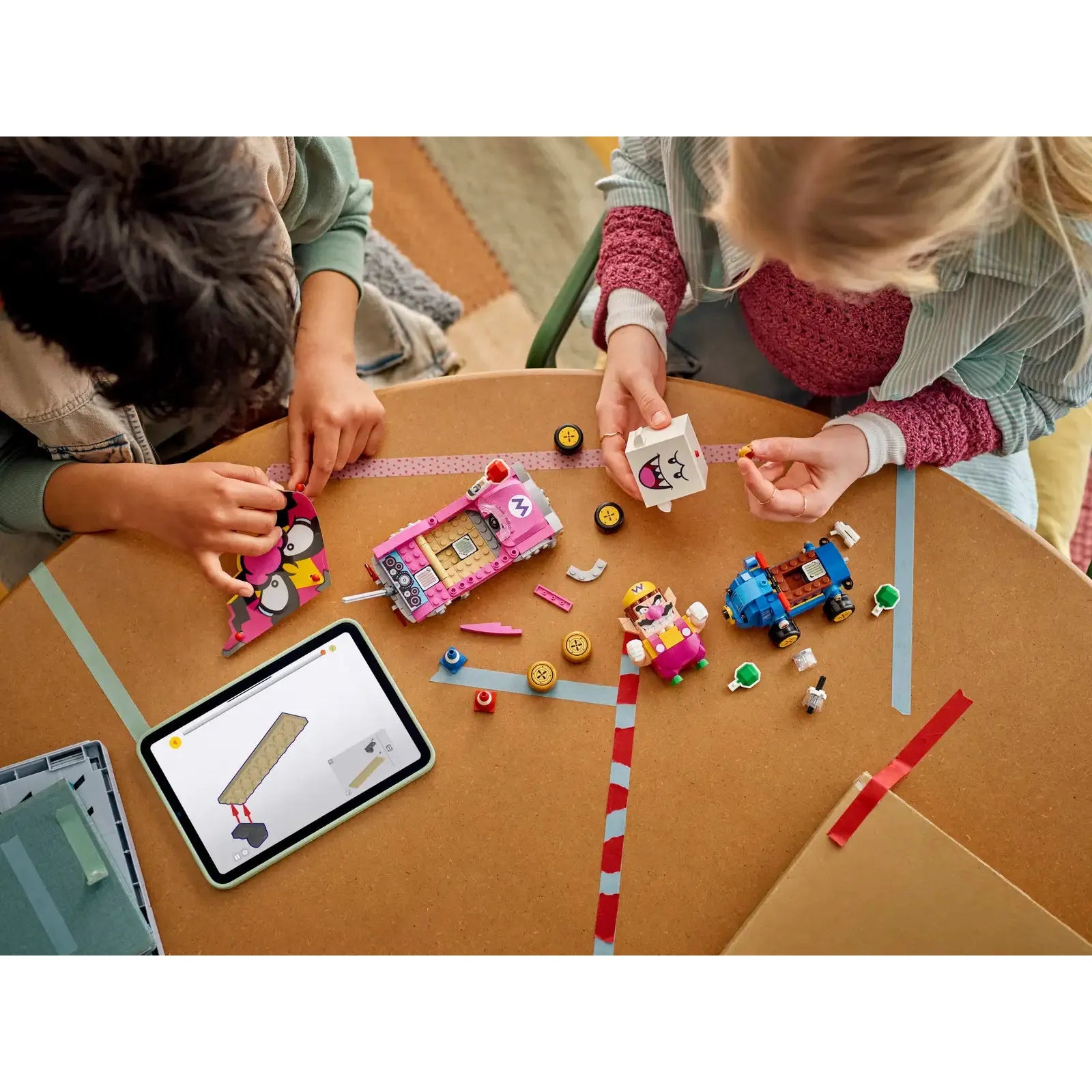 Race, drift, glide — and battle it out with Wario and King Boo! This LEGO Mario Kart set delivers classic video-game fun in brick form with two buildable karts, shell-launching action, and a detachable glider for aerial stunts.