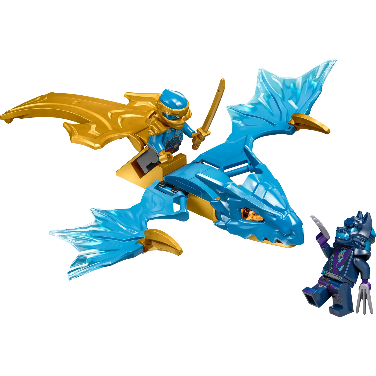 Experience the excitement of NINJAGO® Dragons Rising season 2 with Nya’s Rising Dragon Strike (71802)! This ninja playset lets 6+ year old boys and girls build the first-ever LEGO® NINJAGO dragon action toy. Simply slam down the dragon’s golden tail and watch it burst into action.
