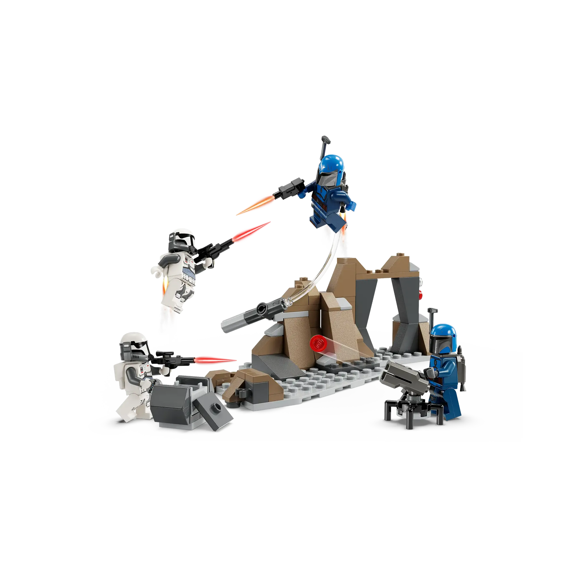 Join the action on Mandalore! The LEGO® Star Wars: The Mandalorian Ambush on Mandalore Battle Pack (75373) lets kids relive Season 3 scenes with 4 collectible minifigures, jetpacks, blasters, and a stud-shooting cannon for thrilling battles.