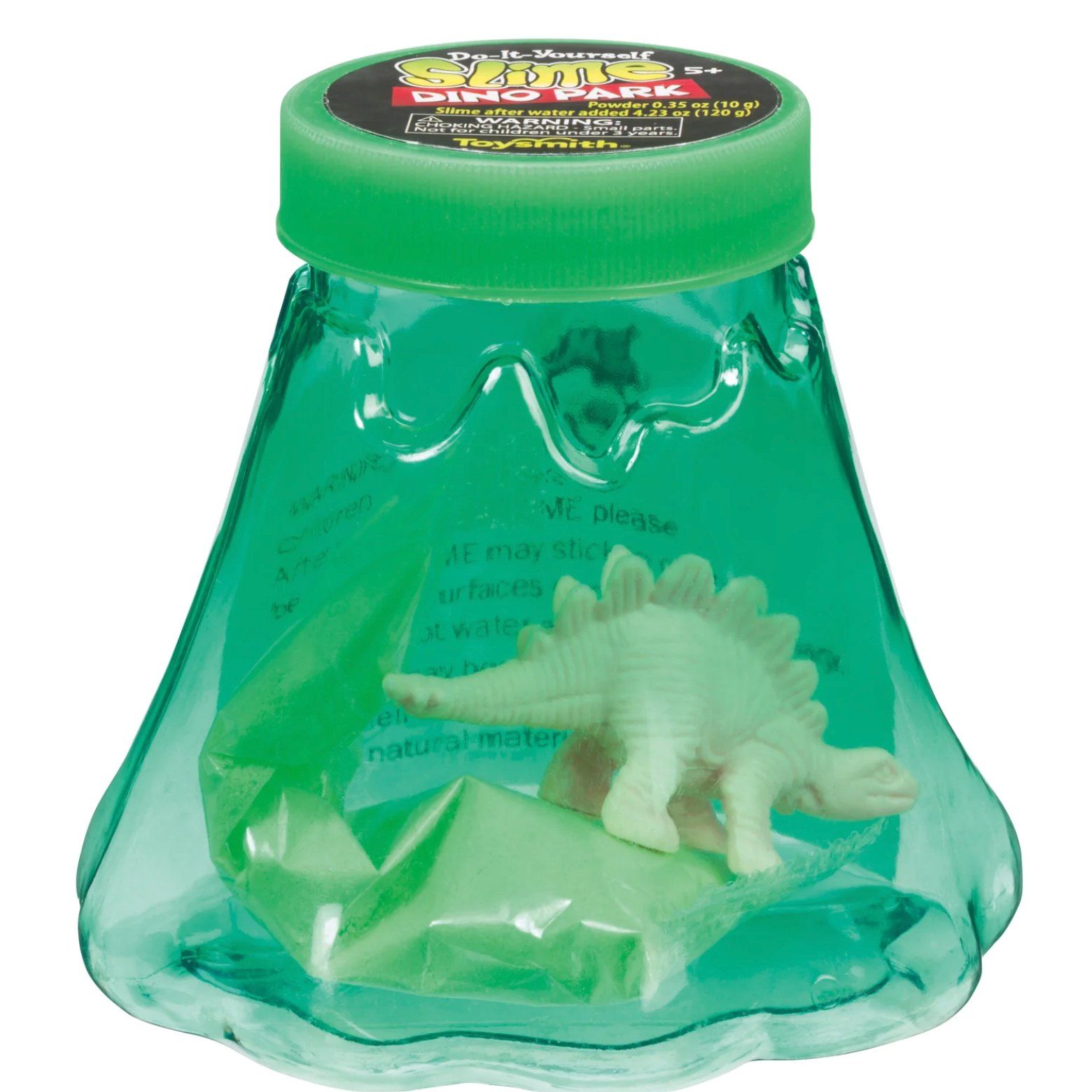 "Get ready for a triple dose of fun with the Toysmith DIY Slime Dino Park! Shake, play, and create your own slime with this quirky and entertaining toy. Watch the slime form in the plastic volcano and rescue the included silicone dinosaur. Perfect for ages 3 and up. Available in green and blue."