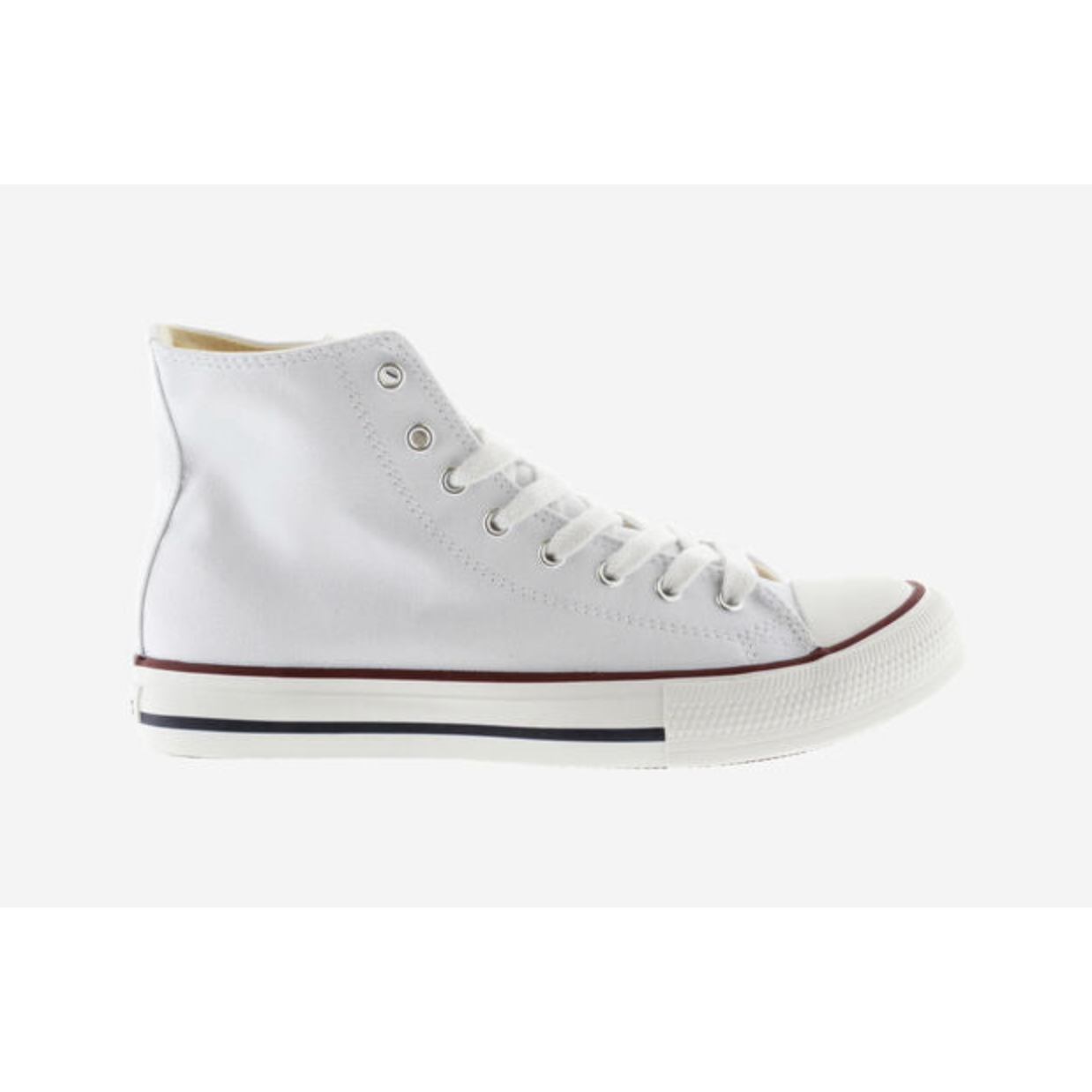 Basketball style boot made from cotton canvas and rubber toecap. Easy to combine, lightweight and never go out of fashion.