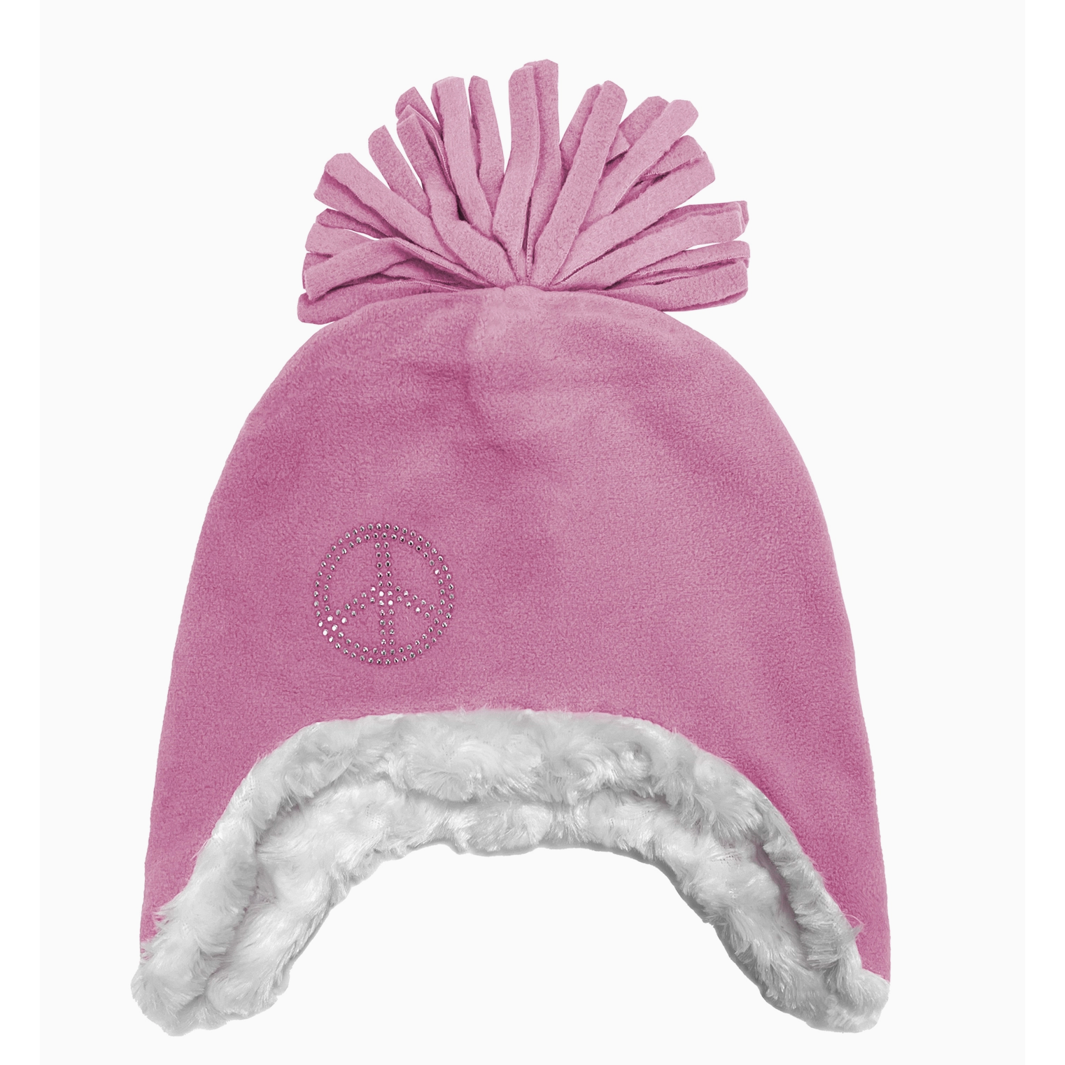 Show your bling with this Girl's Microfleece Peruvian Helmet with faux fur lining and peace sign bling applique. Microfleece is a natural insulator with flexible comfort and durability, and the faux fur lining provides exceptional warmth while playing outside in the snow. Faux fur lining extends to the ear flaps for additional warmth and protection.