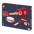 1 tambourine with cymbals (15 x 15 x 4,5 cm - 5.9 x 5.9 x 1.8 in) 1 guitar (53,5 x 6 x 17,5 cm - 21 x 2.3 x 6.9 in) 1 harmonica (13 x 2 x 2,5 cm - 5.1 x 0.8 x 1 in) 1 trumpet (18 x 5 x 5 cm - 7.1 x 2 x 2 in) 1 clapper (20 x 3 x 4.5 cm - 7.9 x 1.2 x 1.8 in) Closed colour box