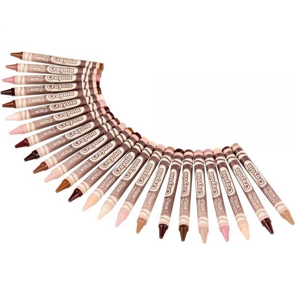 Crayola Colors of the World Crayons contain 24 specially formulated colors representing people of the world. These skin tone crayons are an exciting addition to your crayon collection at home or in the classroom, making coloring pages and drawings even more detailed and realistic. The subtle shades inside are formulated to better represent the growing diversity worldwide. Colors of the World fall into three main shades: Almond, Golden, and Rose – and all the darker or lighter shades in between. This pack includes 24 crayon colors that represent people from around the world. Makes a perfect pairing with Crayola Coloring Books!