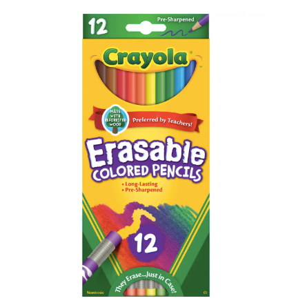 Get ready for endless creativity and fun with the Crayola Erasable Colored Pencils. These 12 classic colored pencils come with built-in erasers, making it easy for kids to make changes and corrections to their artwork. Perfect for classrooms and homework stations, these pencils will keep kids motivated and confident in their creations. Say goodbye to giving up or starting over - these pencils are a must-have for any budding artist.