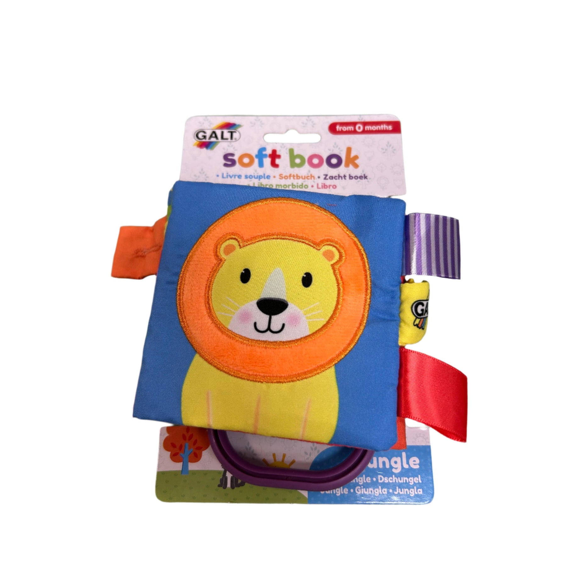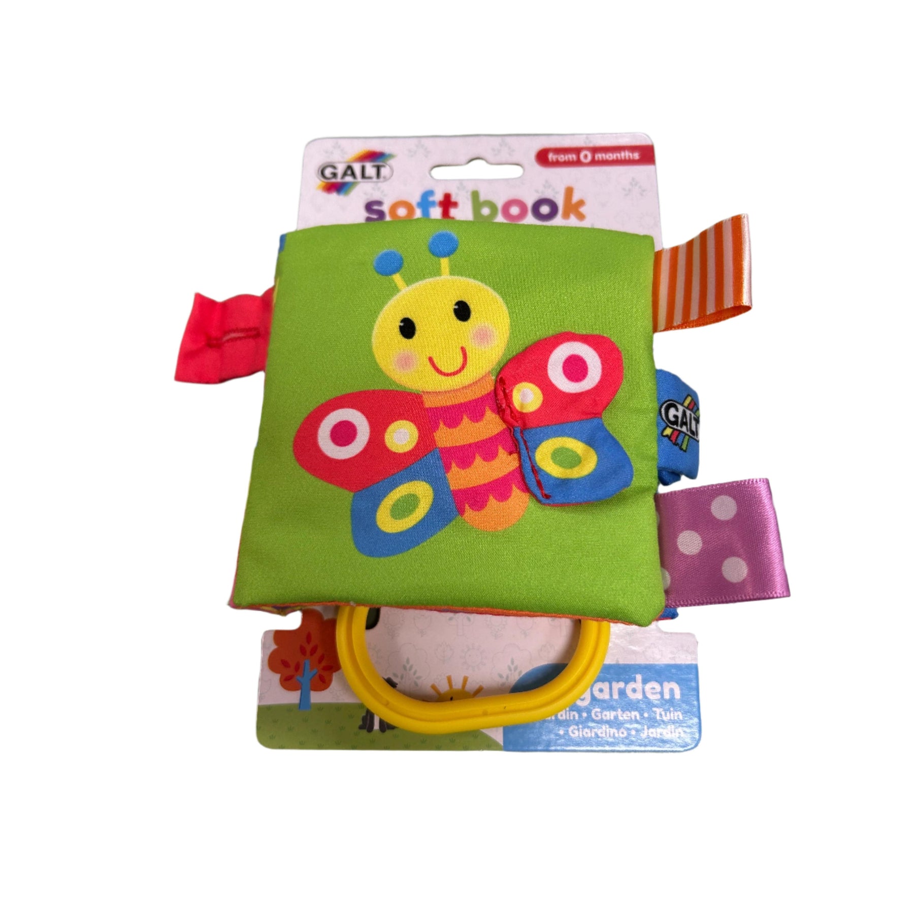Colorful soft fabric book with activities, textures, crinkle and ribbon tags. Handy link to attach to a push chair, or car seat. Machine washable.