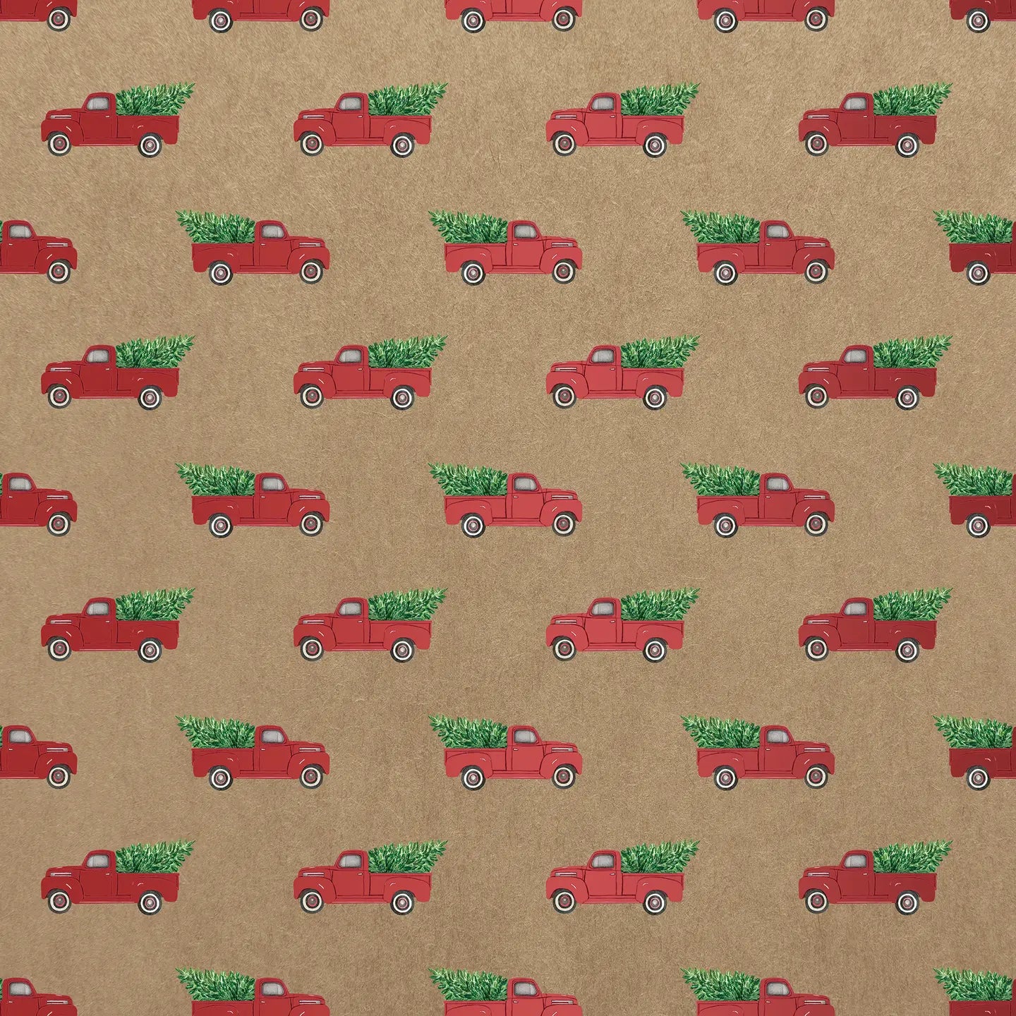 Red Pickup Truck - Natural Kraft Paper Metallic Red Highlights