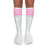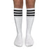 Get the perfect sporty look with these vibrant striped tube socks! Made with top-quality cotton yarn for softness and durability, they feature a fully cushioned foot and leg for ultimate comfort. The ribbed top keeps them in place all day, so you can rock them with any outfit - from casual to workout, even Halloween costumes! Perfect for anyone, from kids to adults.