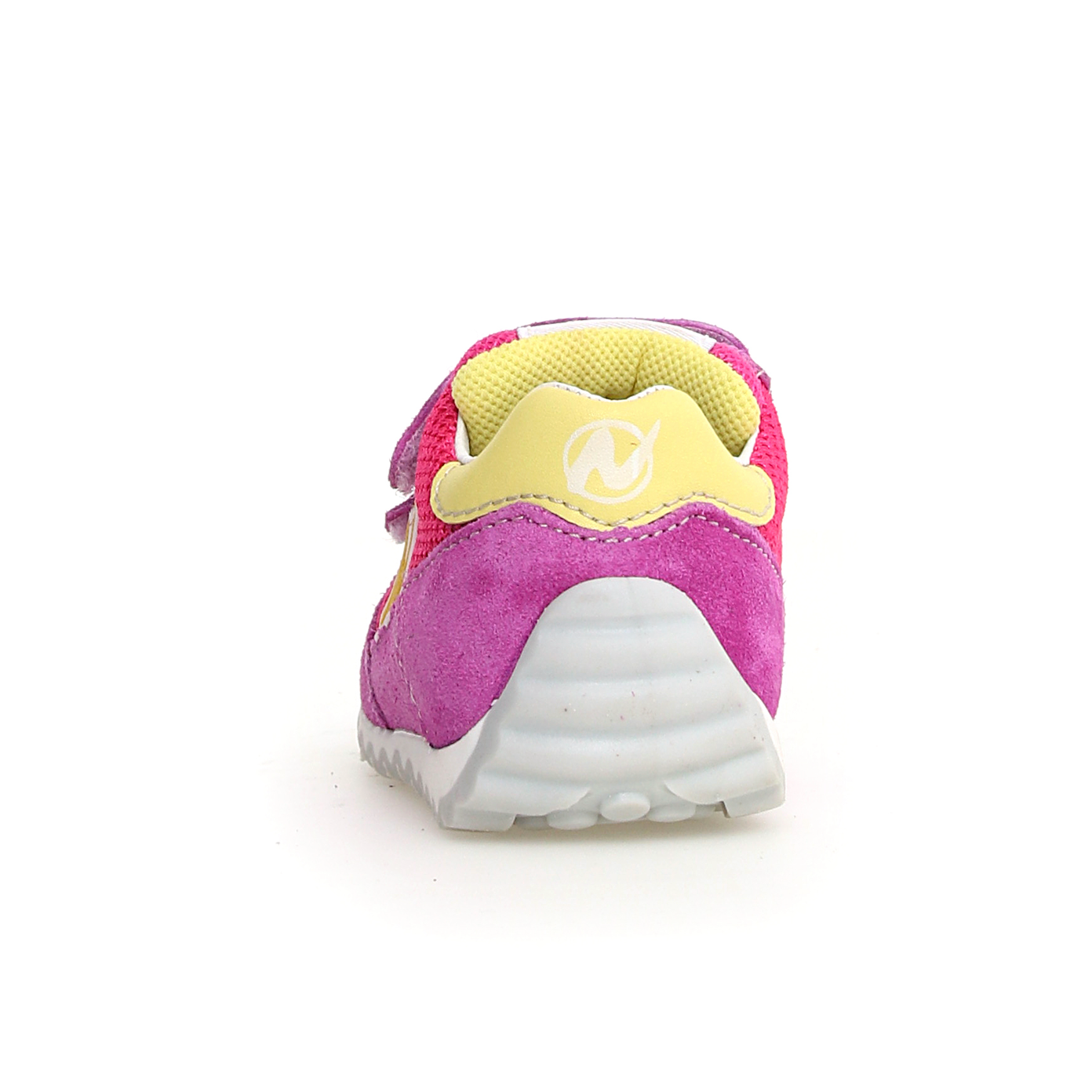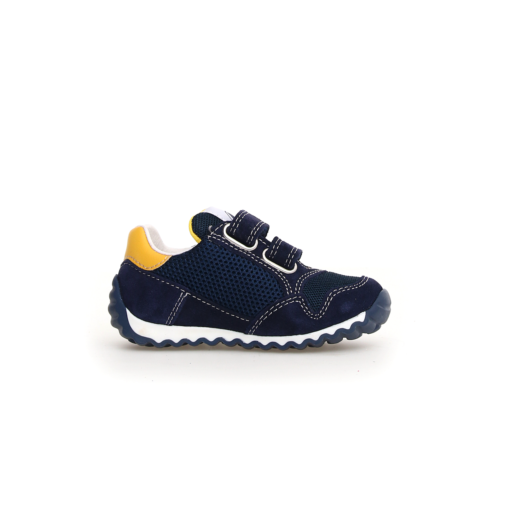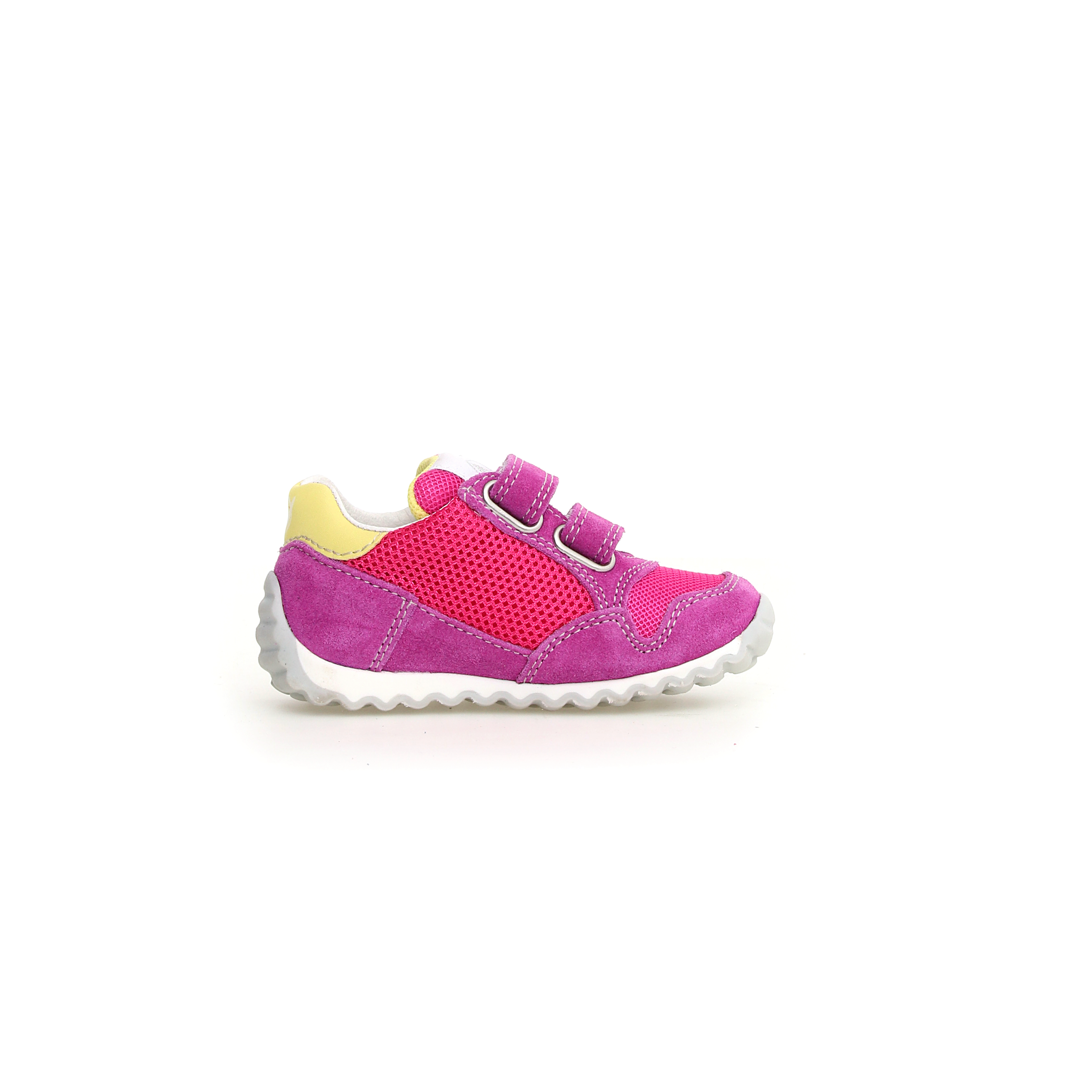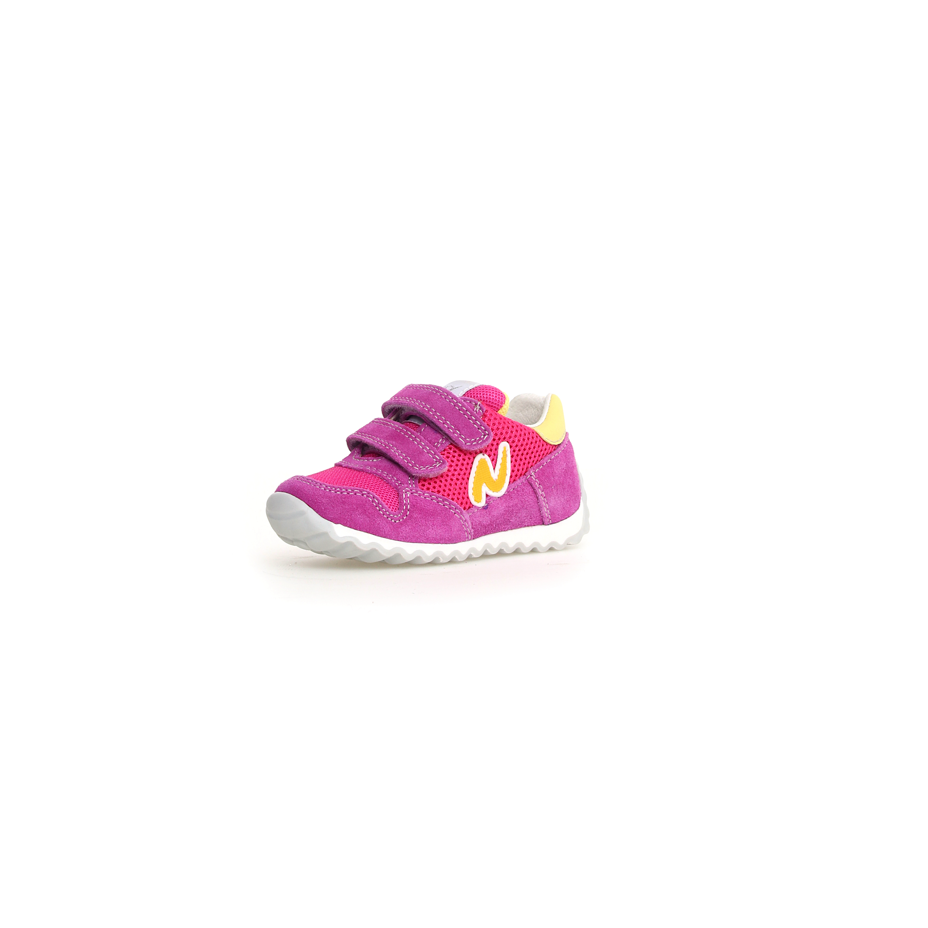 Cool sneaker for dynamic feet! Perfect for city strolls or outdoor fun, with breathable fabric and suede upper. Easy to wear with double strap, comfy leather insole, and rubber sole with corrugated tread. Reinforced toe and heel.