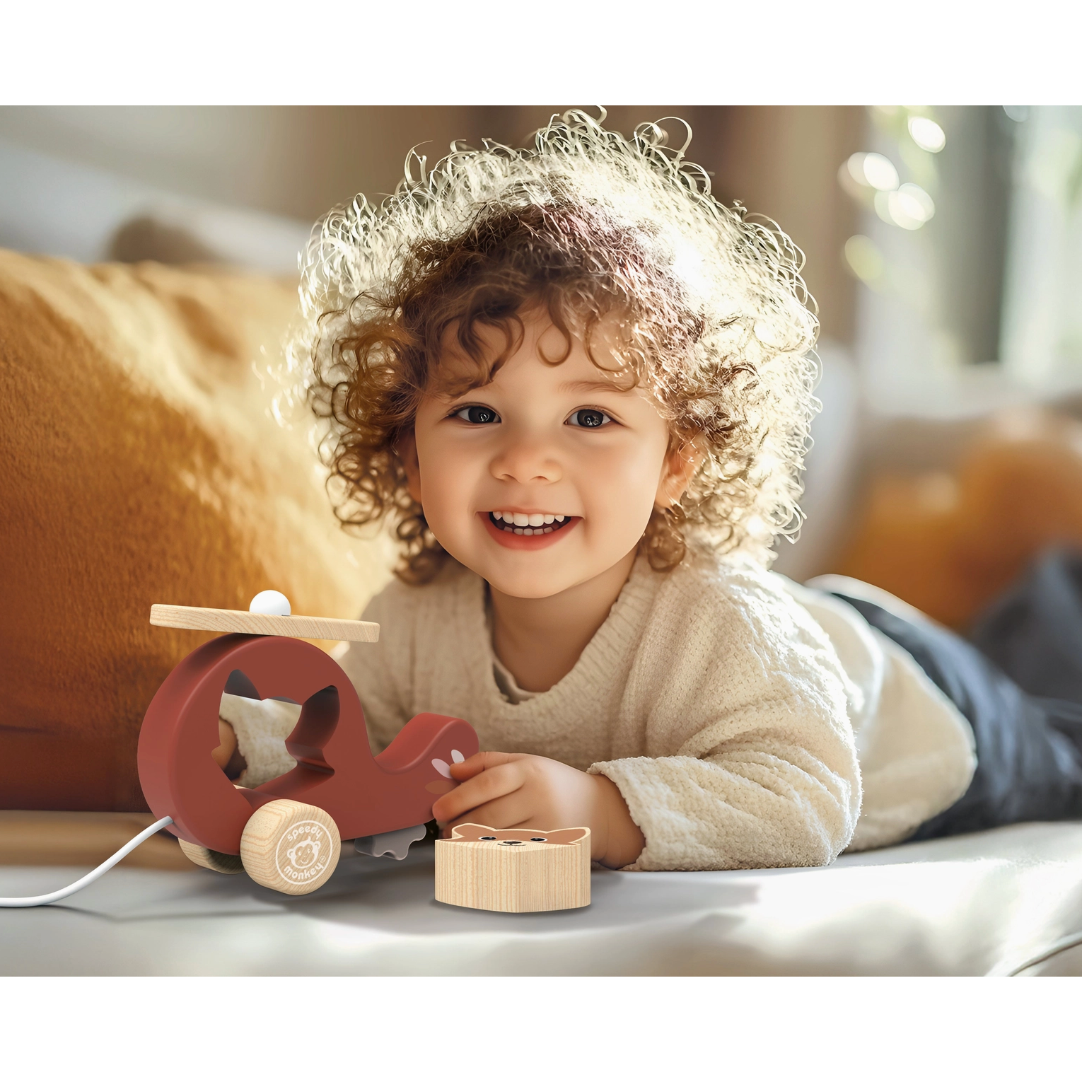 Let little imaginations soar with the Pull Along Helicopter! Designed for toddlers 12 months and up, this colorful rolling toy encourages walking, coordination, and motor skill development through playful movement. With its friendly design and spinning wheels, it’s the perfect first adventure companion for indoor play.