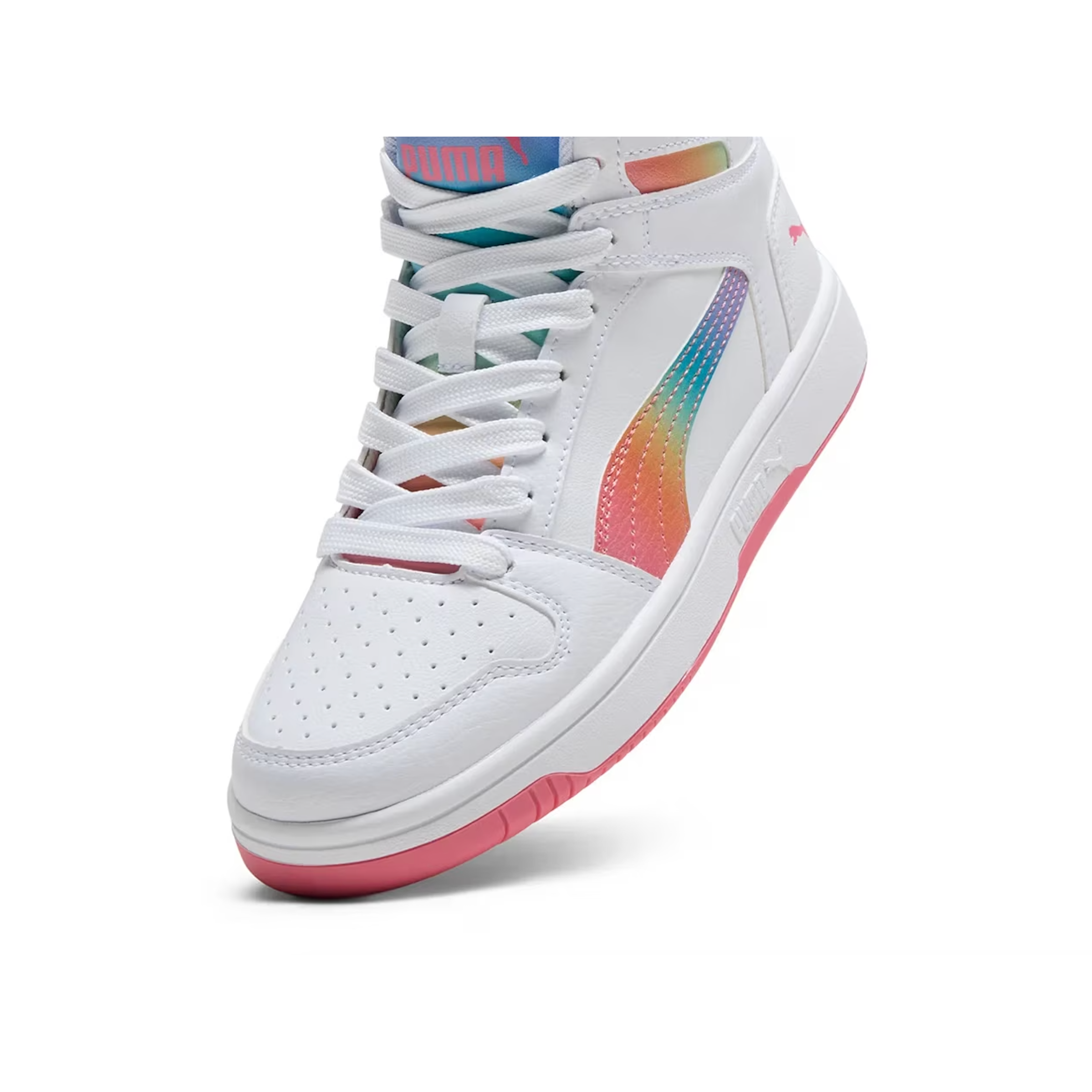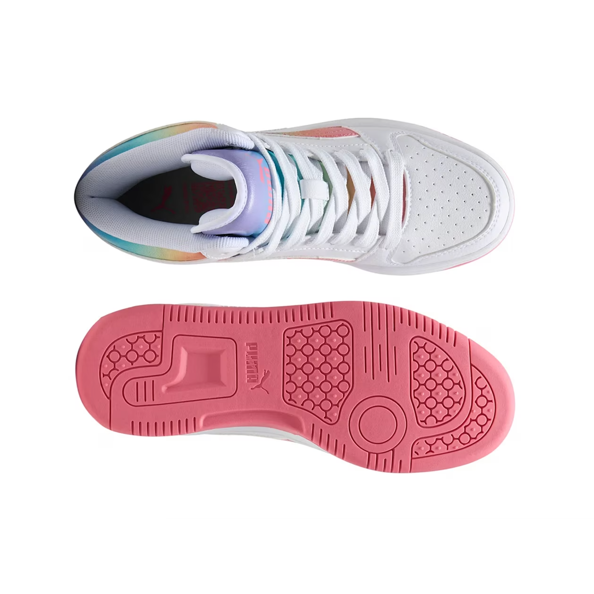 These mid-cut sneakers bring basketball vibes with a synthetic leather upper, durable cupsole, and iconic PUMA Formstrip. Perforations add breathability, while the SOFTFOAM+ sockliner delivers all-day cushioning.