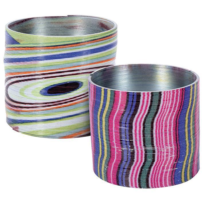 - Classic metal “sproing” spring toy that stretches, flips, and descends stairs