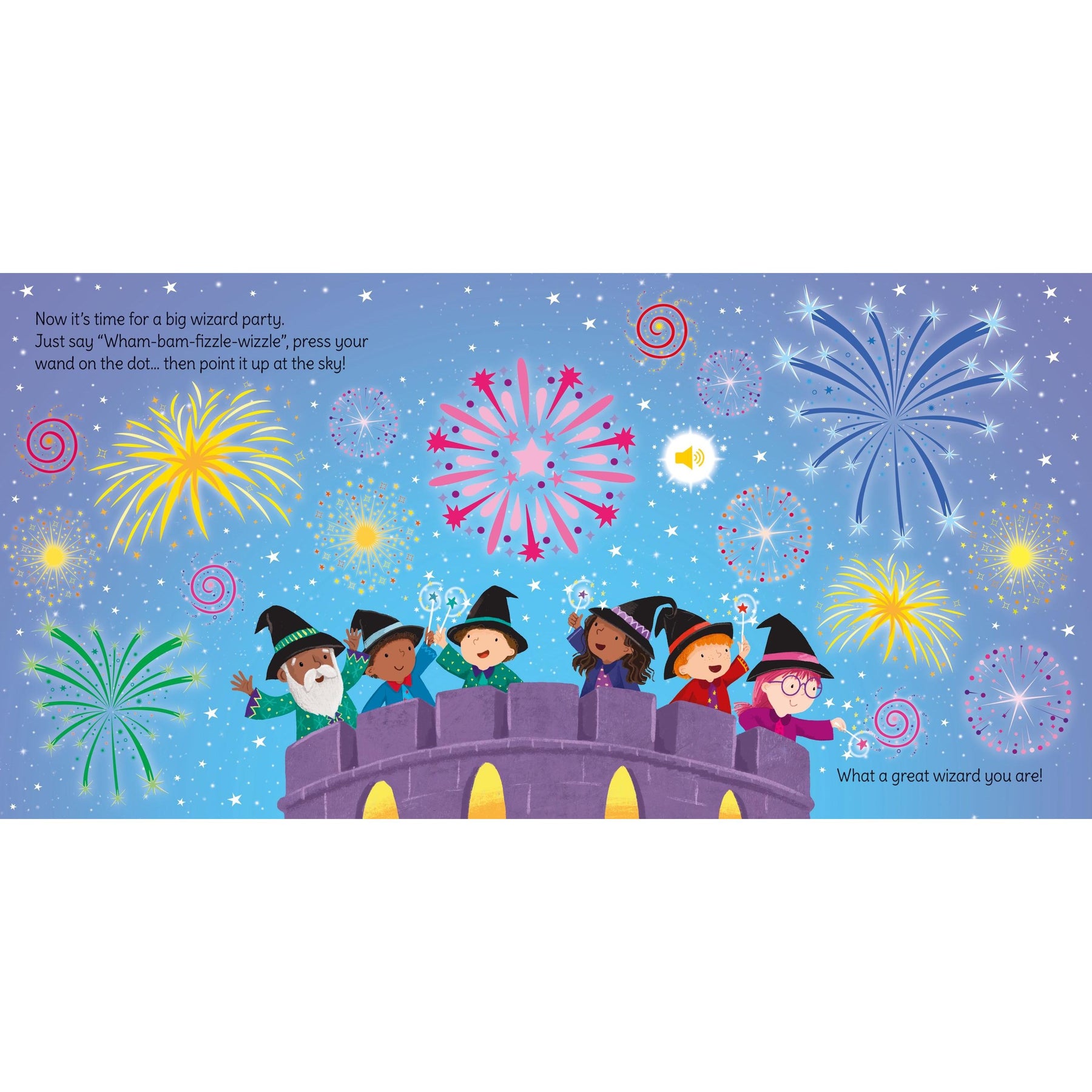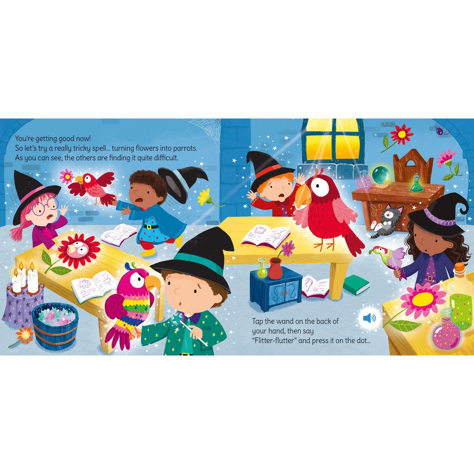 Step into a world of spells and sparkles! With the magic wand included, kids can press it to the page to hear enchanting sounds and cast fun spells that bring each scene to life.